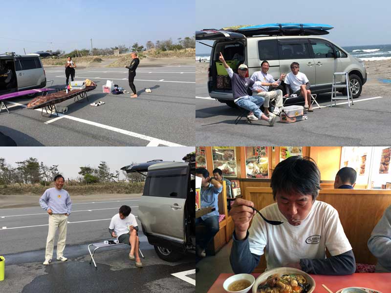 無風でサイズは腰腹ながらもなんとか遊べました。 2時間超えると波がなくなり、ラス一もままならずgame over! 着替えも気持ちよく再び珍来の開店まで浜で和みます。